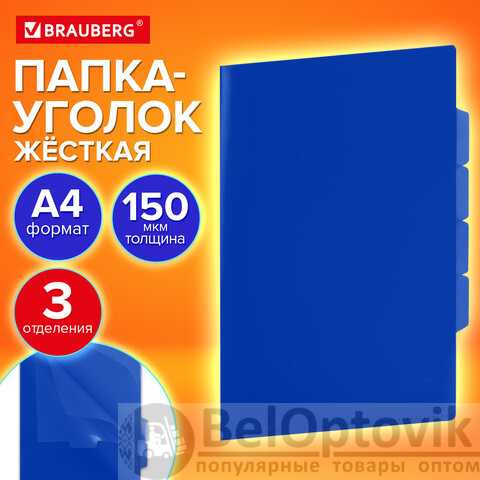 Папка-уголок 3 отделения, жесткая, непрозрачная, А4, BRAUBERG "SPECIAL", синяя, 0,15 мм, 273063