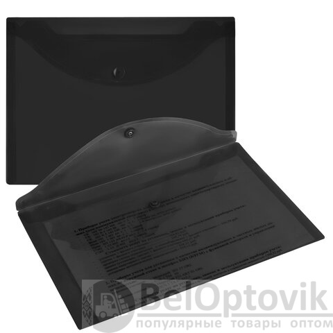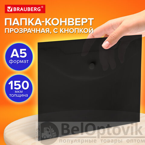Папка-конверт с кнопкой прозрачная МАЛОГО ФОРМАТА, А5, BRAUBERG "UNIVERSAL", черная, 0,15 мм, 273067