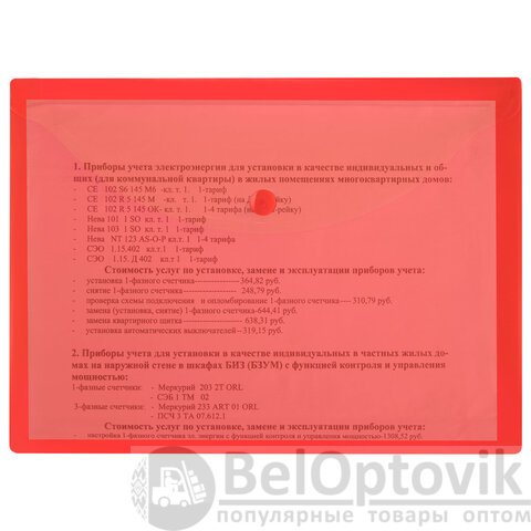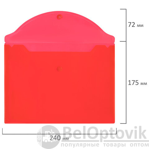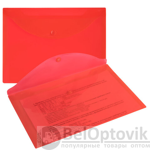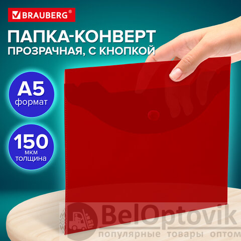 Папка-конверт с кнопкой прозрачная МАЛОГО ФОРМАТА, А5, BRAUBERG "UNIVERSAL", красная, 0,15 мм, 273068