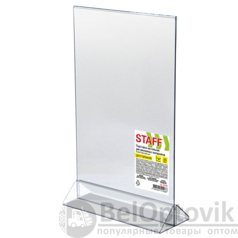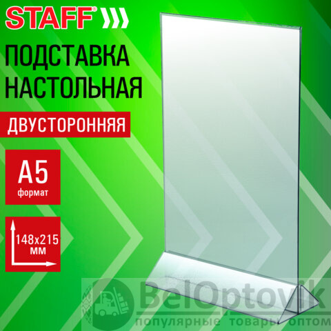 Подставка настольная для рекламных материалов ВЕРТИКАЛЬНАЯ (148х215мм), А5, двусторонняя, STAFF, 291385