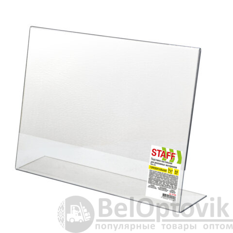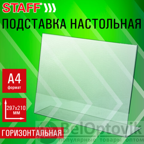 Подставка настольная для рекламных материалов ГОРИЗОНТАЛЬНАЯ (297х210 мм), А4, односторонняя, STAFF, 291396