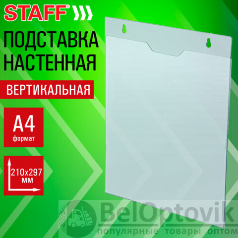 Подставка настенная для рекламных материалов ВЕРТИКАЛЬНАЯ (210х297 мм), А4, ПЭТ, STAFF, 291400