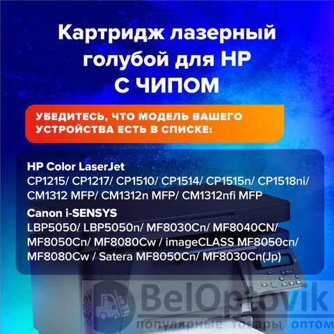 Страховой полис предоставляется нашим партнером – СПАО Ингосстрах. Совместимые лазерные картриджи SONNEN – это оригинальное качество по доступной цене. Данная модель содержит ЧИП, подходит для лазерных принтеров и МФУ HP Color LaserJet CP1215/CP1217/CP1510/CP1514/CP1515n/CP1518ni/CM1312 MFP/CM1312n MFP/CM1312nfi MFP; Canon i-SENSYS LBP5050/LBP5050n/MF8030Cn/MF8040CN/MF8050Cn/MF8080Cw / imageCLASS MF8050cn/MF8080Cw / Satera MF8050Cn/MF8030Cn(Jp).