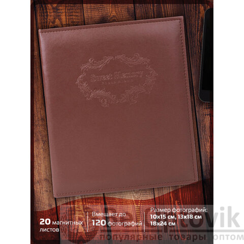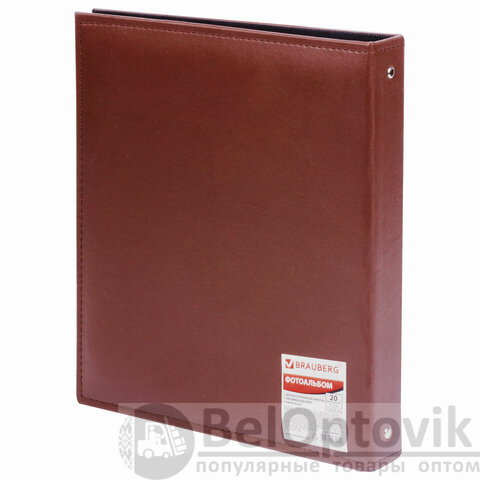Фотоальбом BRAUBERG на 20 магнитных листов, 23х28 см, под гладкую кожу, на кольцах, коричневый, 390492
