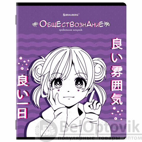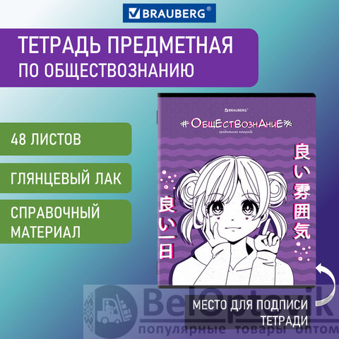 Тетрадь предметная "ANIME" 48 л., глянцевый УФ-лак, ОБЩЕСТВОЗНАНИЕ, клетка, BRAUBERG, 404533