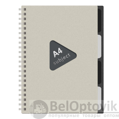 Тетрадь обложка пластик, А4 80 л., гребень, 4 съемных разделителя, клетка, BRAUBERG, бежевый, 405362