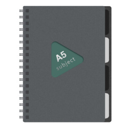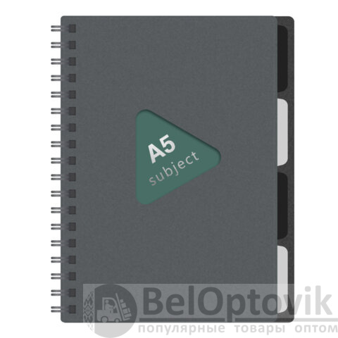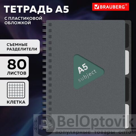 Тетрадь обложка пластик, А5 80 л., гребень, 4 съемных разделителя, клетка, BRAUBERG, серый, 405369