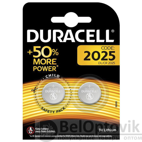 Батарейки литиевые DURACELL Lithium ОРИГИНАЛ CR2025 "таблетки, дисковые, кнопочные" КОМПЛЕКТ 2 шт.