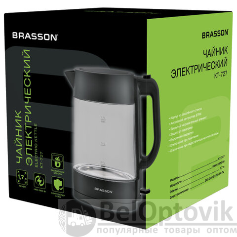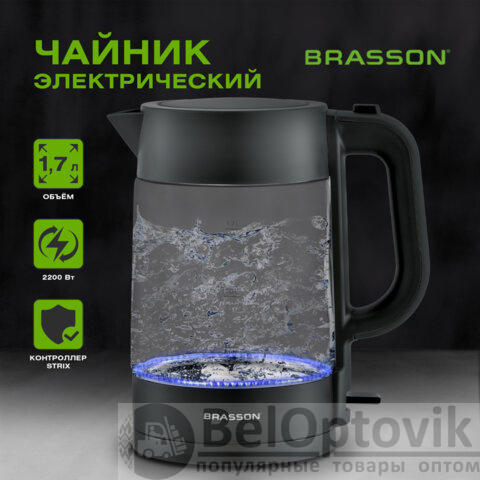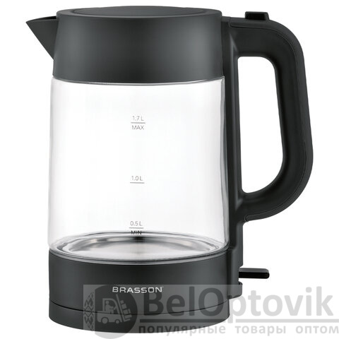 Чайник BRASSON (БРАССОН) KT-727, 1,7 л, 2200 Вт, стекло, графит, подсветка, 455190