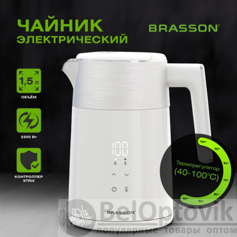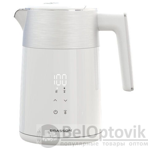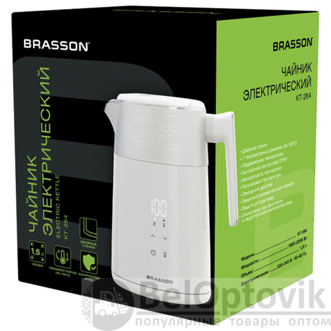 Чайник с двойными стенками, терморегулятором и дисплеем BRASSON (БРАССОН) KT-264, 1,5 л, 2200 Вт, 7 температурных режимов, белый, 455193
