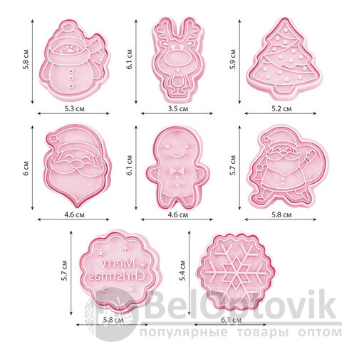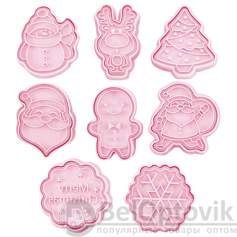 Формочки состоят из двух частей: вырубки и штампа. С помощью вырубки из теста вырезается форма печенья. С помощью штампа "выдавливаются" очертания рисунка на тесте. На штампах для удобства имеется "язычок", что позволяет быстро и легко создавать узоры с новогодней тематикой на печенье.