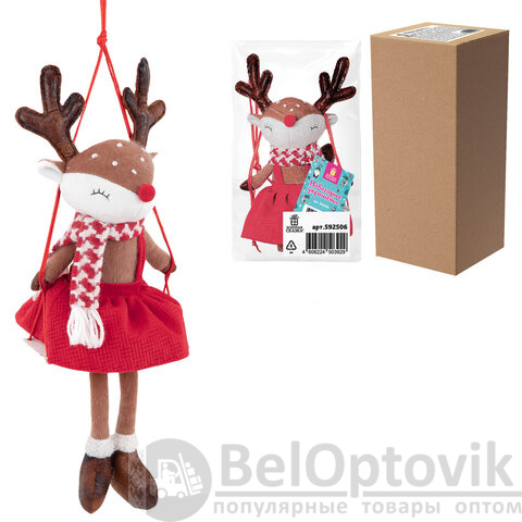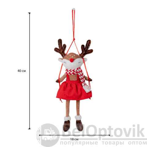 Украшение новогоднее интерьерное 40 см "Оленёнок на качелях", полиэстер, ЗОЛОТАЯ СКАЗКА, 592506