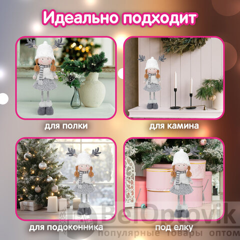 Эта прекрасная девочка не просто украшение, она – настоящая волшебница, способная изменить атмосферу Вашего дома. Благодаря своим телескопическим ножкам, Девочка может менять размер и легко впишется в любой интерьер – от уютной гостиной до сказочной детской комнаты. Она станет великолепным украшением для праздников и повседневной жизни, добавляя нотку волшебства в каждый момент.