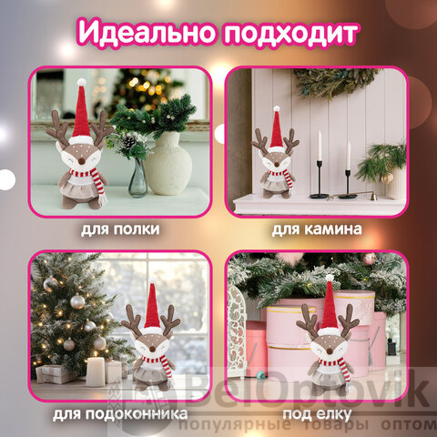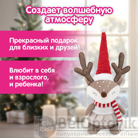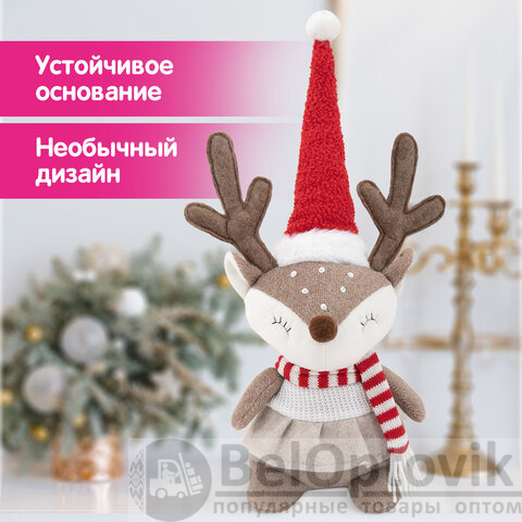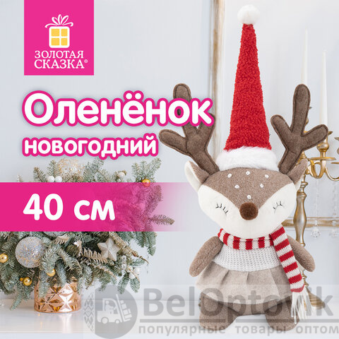 Украшение новогоднее интерьерное 40 см "Веселый оленёнок", полиэстер, ЗОЛОТАЯ СКАЗКА, 592508