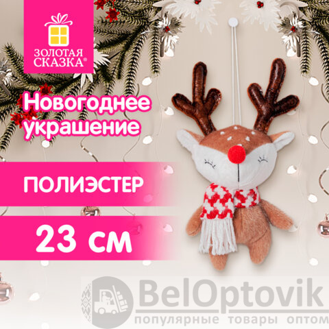 Украшение новогоднее интерьерное 23 см "Оленёнок в шарфе", полиэстер, ЗОЛОТАЯ СКАЗКА, 592510
