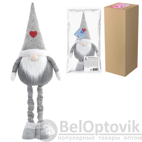 Украшение новогоднее интерьерное 70 см "Гном Милаш", телескопические ножки, полиэстер, ЗОЛОТАЯ СКАЗКА, 592521