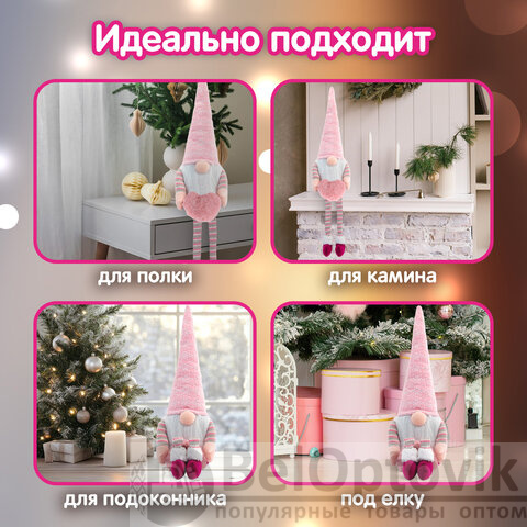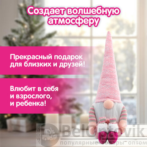Украшение новогоднее интерьерное 70 см "Гном с сердечком", полиэстер, ЗОЛОТАЯ СКАЗКА, 592524