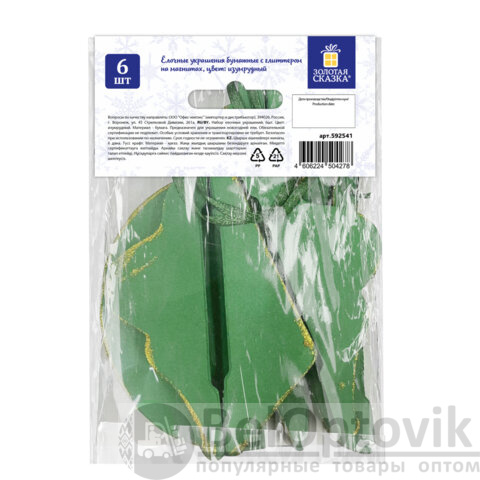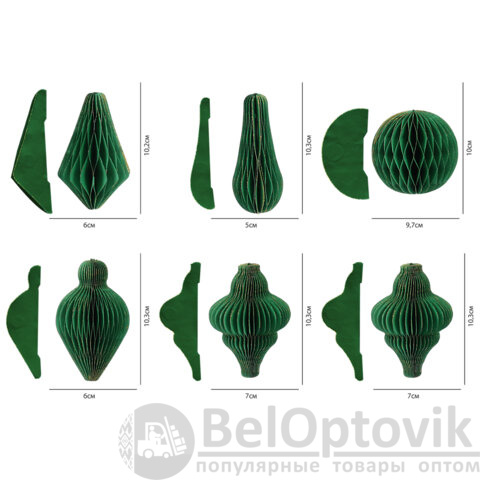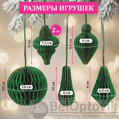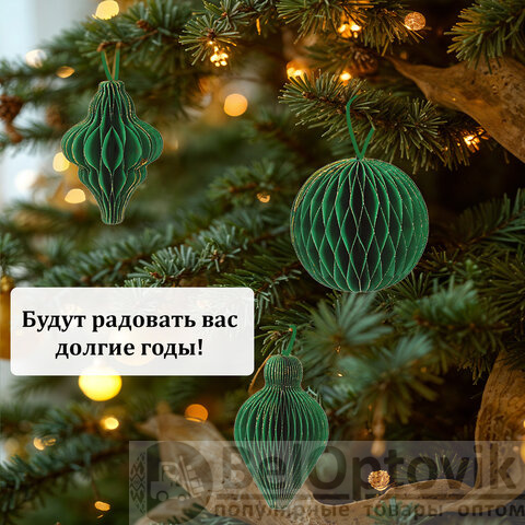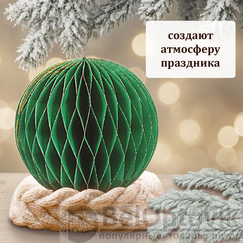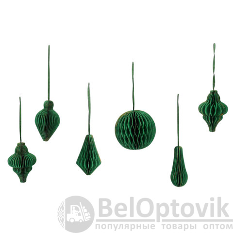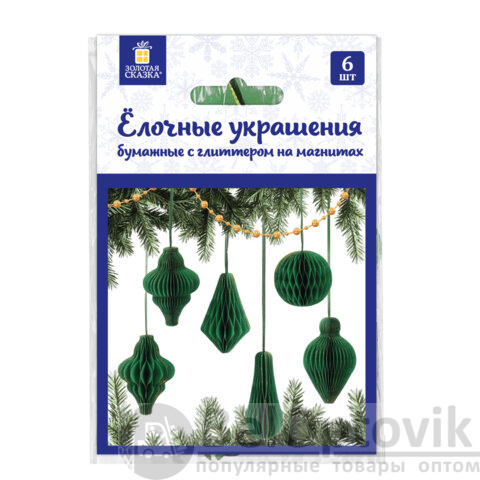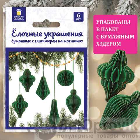 Елочные украшения из бумаги, НАБОР 6 шт., с глиттером, цвет изумрудный, ЗОЛОТАЯ СКАЗКА, 592541