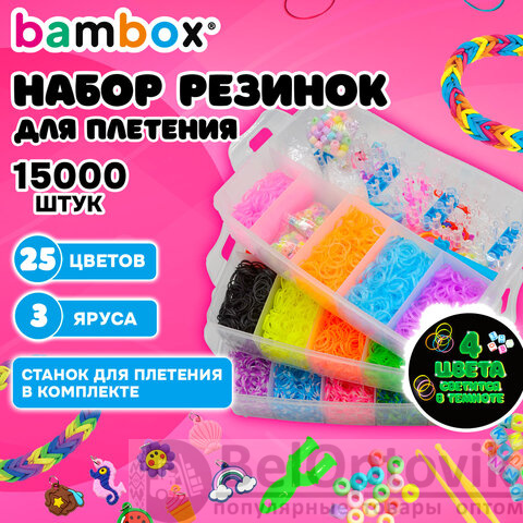 Набор резинок для плетения украшений BAMBOX включает в себя: