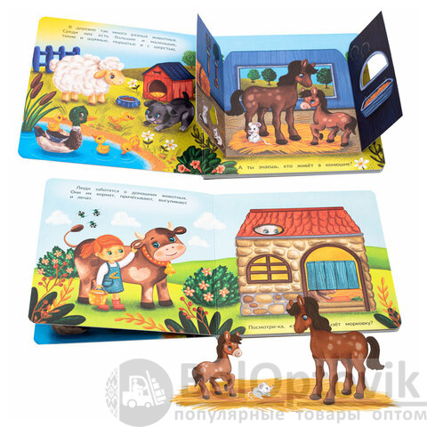 Книжка с двойными окошками "Веселые окошки", 160х160 мм, твердая обложка, АССОРТИ, Би