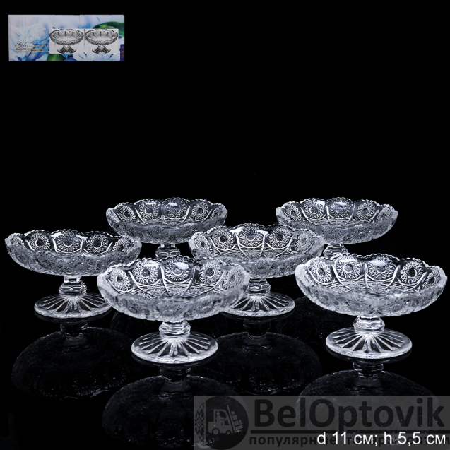 Ваза для конфет на ножке 6 штук Солнце 11x5,5 см / JY-3369 /уп 12/ в подарочной коробке