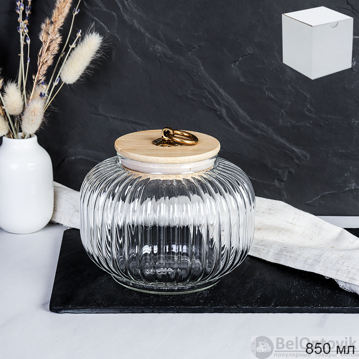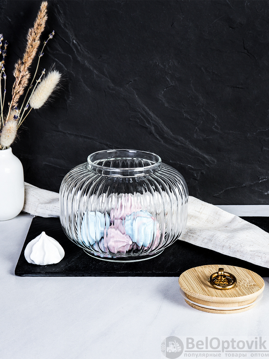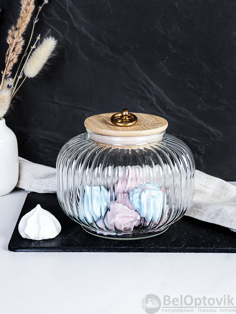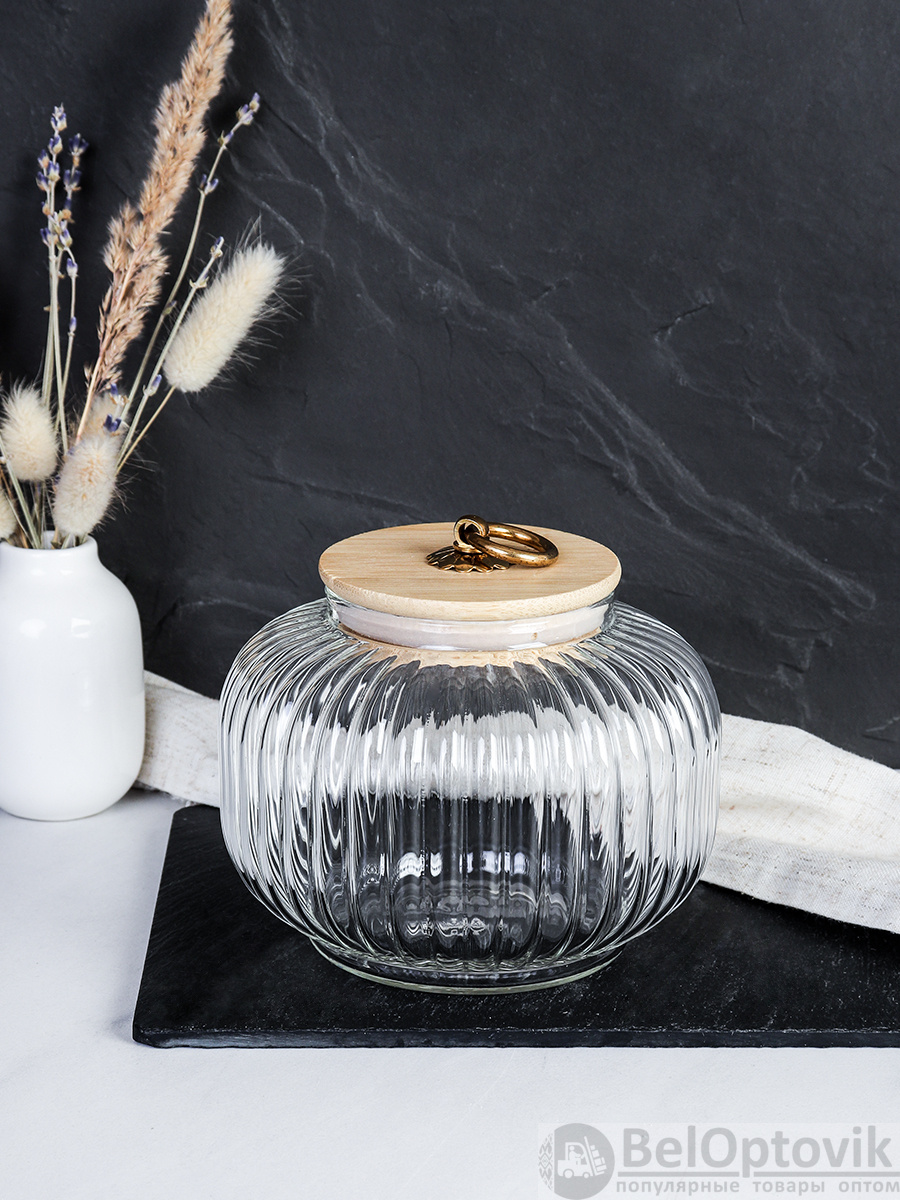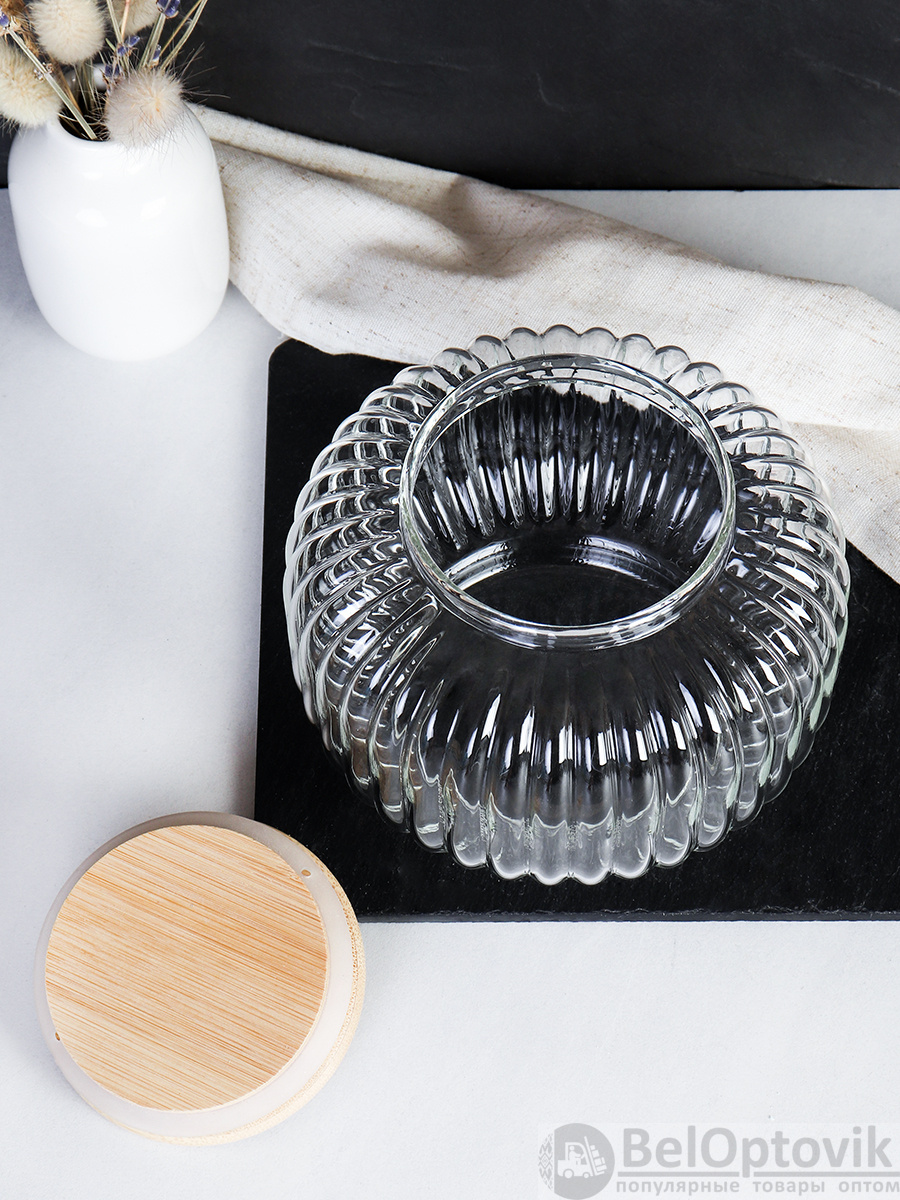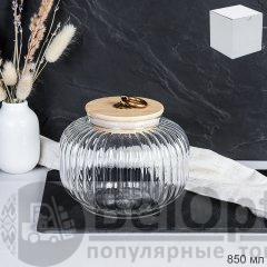 Банка для сыпучих бамбуковая крышка Бочонок рифленая 850 мл / 9544 /уп 60/