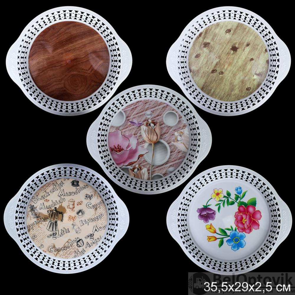 Поднос круглый с ручками 34х30х3 см / FH-1701 /уп 160/*