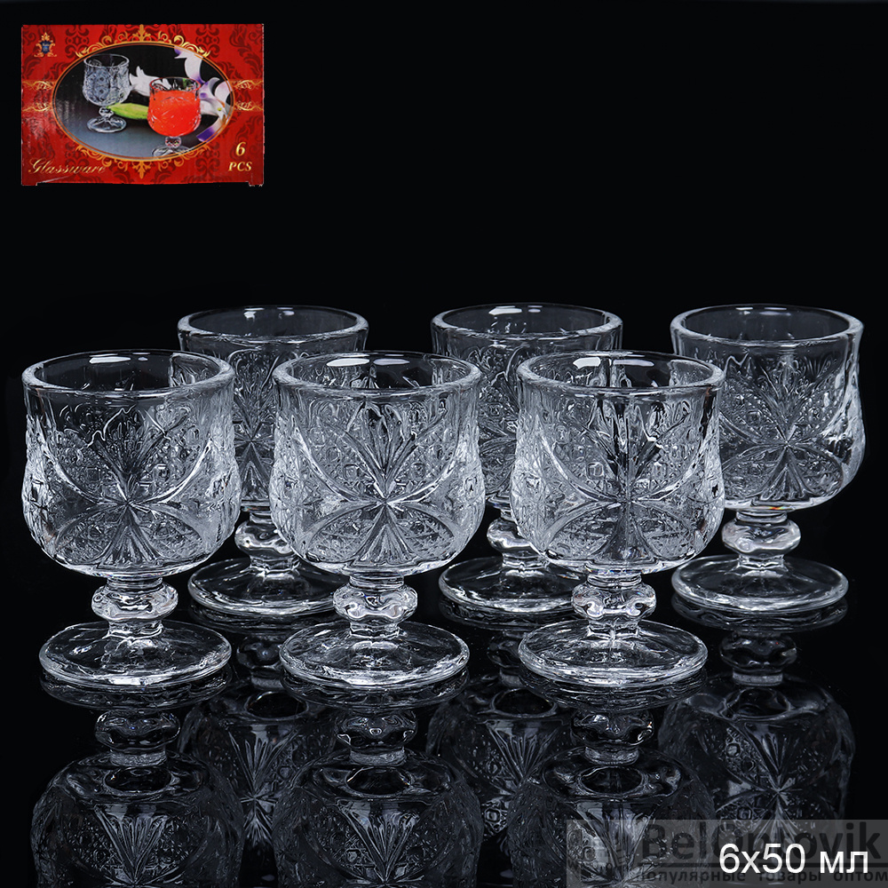 Рюмки 6 штук 50 мл бочонок Бабочка / 8019A-1/8019B-1/уп 24/