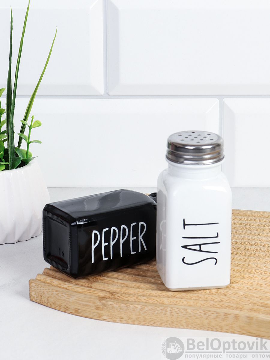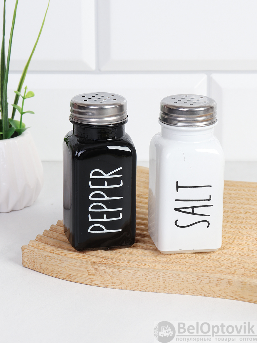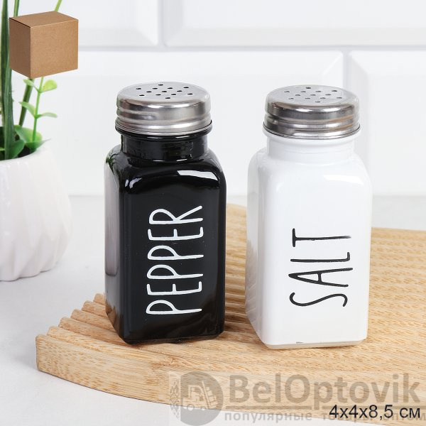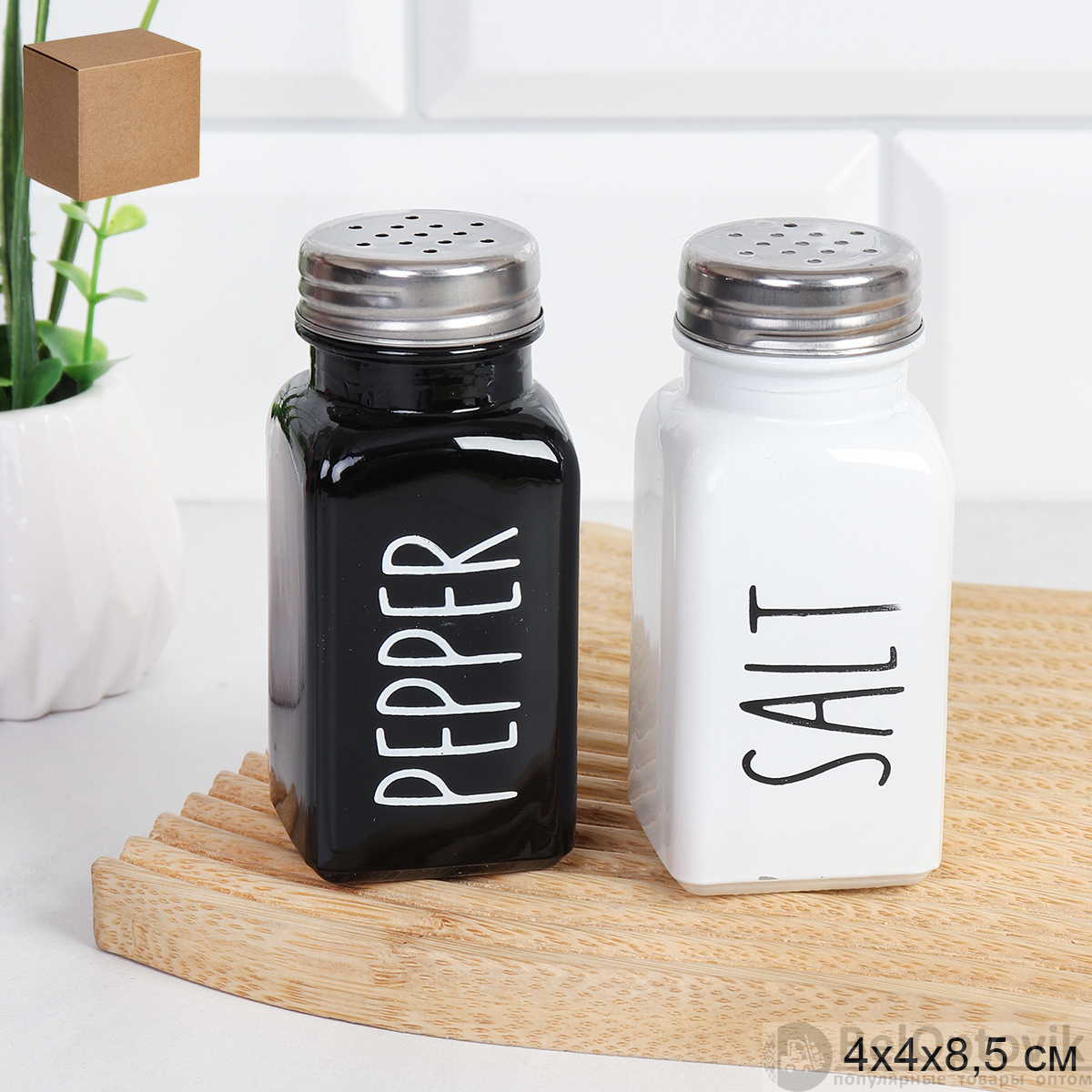 Набор для специй 2 предмета / NSP-045 /уп 100/ Стекло/ Черно-белый
