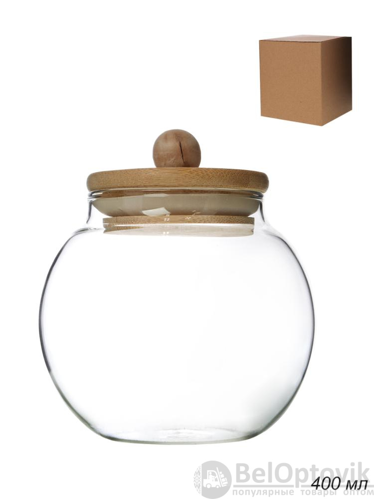 Банка для сыпучих бамбуковая крышка Бочонок 400 мл / GT-SWY-10 /уп 100/