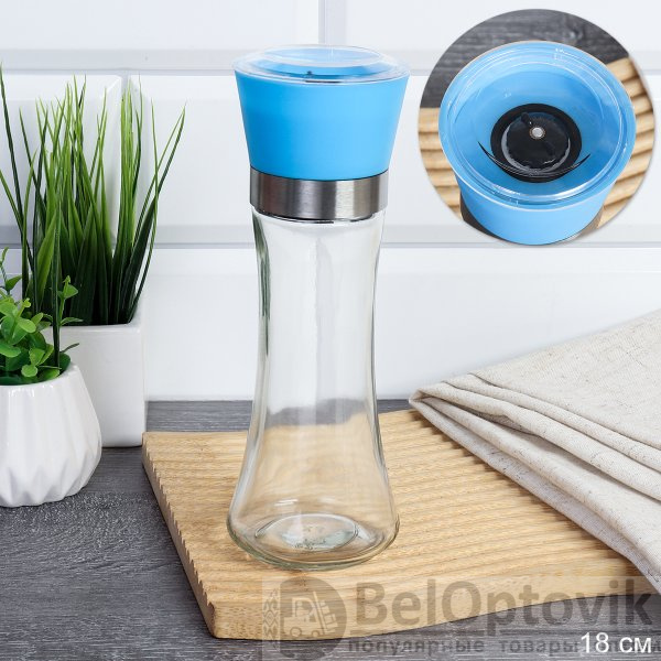 Мельница для специй и соли 19 см с крышкой/ W-457-A /уп 80/ Лазурная