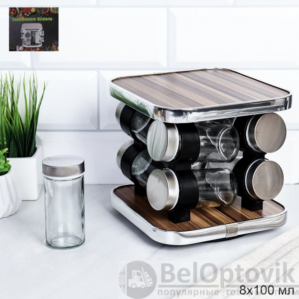 Набор для специй на подставке 8 предметов Квадрат/LQW-040-8 уп 12/