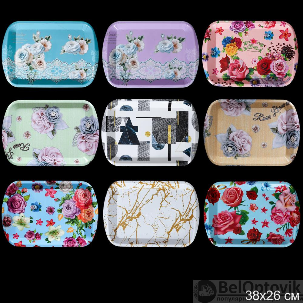 Поднос прямоугольный с ручками 38х26 см / F-59 /уп 100/