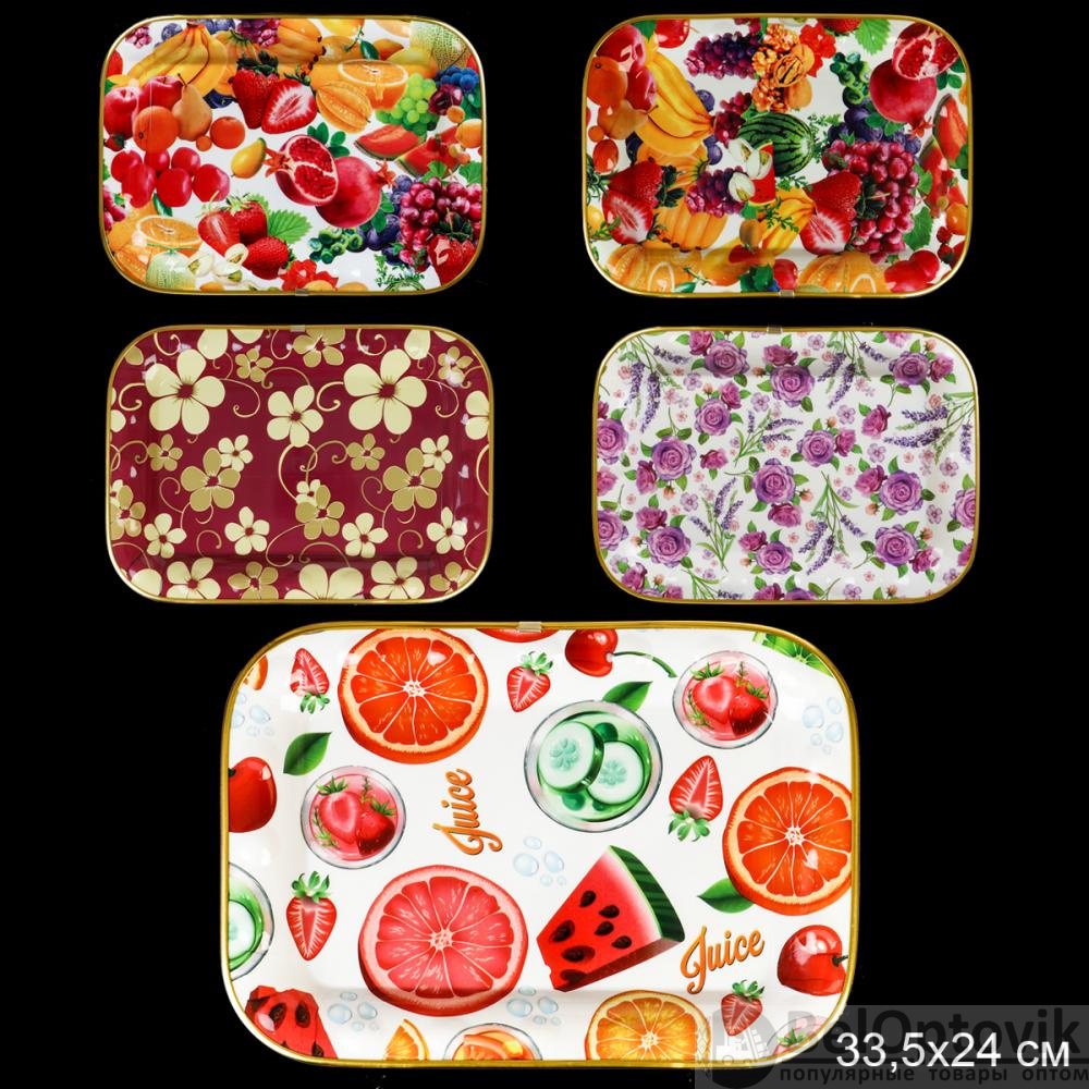 Поднос прямоугольный 33,5х24 см / JCS3425-10J /уп 150/золотой обод