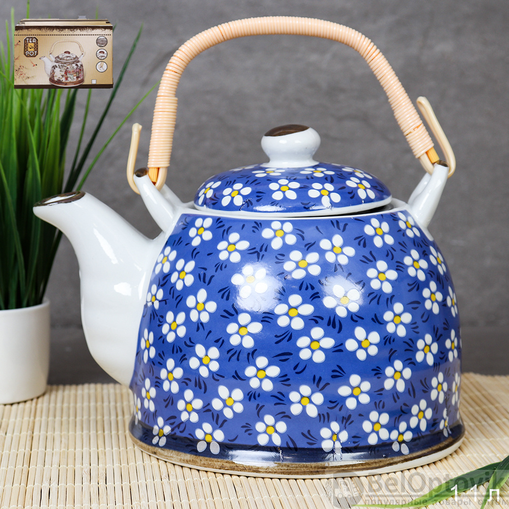 Чайник заварочный 1100 мл с металлическим ситом / RE-310 /уп 36/ плетеная ручка