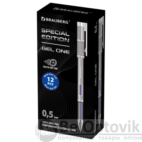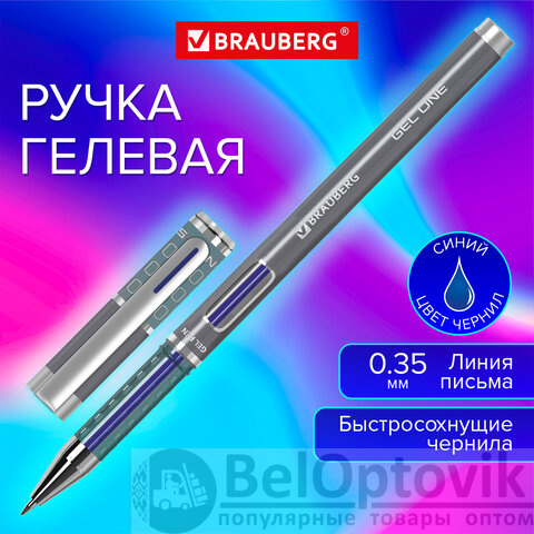 Ручка гелевая BRAUBERG "GEL ONE", СИНЯЯ, стандартный узел 0,5 мм, линия письма 0,35 мм, 144036