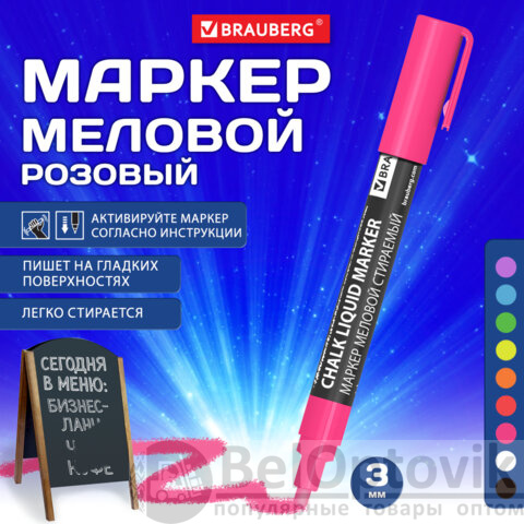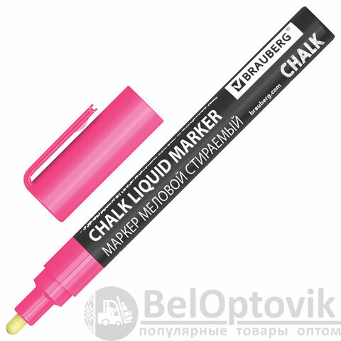 Маркер меловой CHALK LIQUID MARKER, РОЗОВЫЙ, 3 мм, стираемый, BRAUBERG "CHALK", 152586