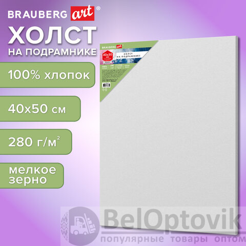 Холст на подрамнике BRAUBERG ART BASIC, 40х50 см, 280 г/м2, хлопок, мелкое зерно, грунт, 192667