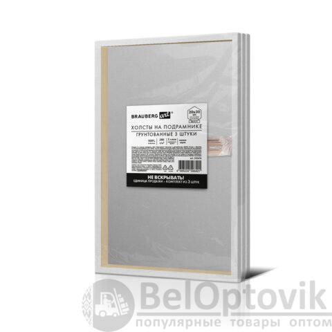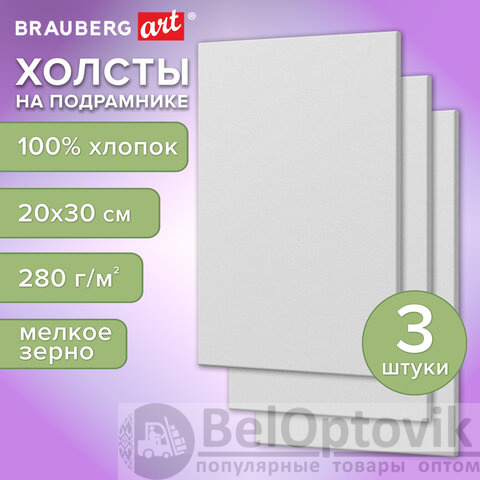 Холсты на подрамнике, набор 3 штуки, BRAUBERG ART BASIC, 20х30 см, 280 г/м2, хлопок, грунт, 192676