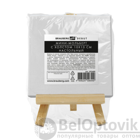 Размер мольберта – 15х8 см. Размер холста – 10х10 см. Набор упакован в термоусадку.