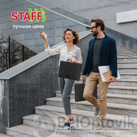 Качественное и безопасное хранение документов, удобство переноски и стильный дизайн. Благодаря папке-портфелю вы сможете контролировать рабочий процесс и подчеркнете свой профессионализм. Закажите папку-портфель STAFF прямо сейчас!
