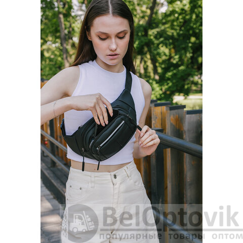 Застежка типа "фастекс" обеспечивает быстрое и надежное крепление сумки на поясе или плече, мгновенно фиксируя аксессуар в нужной позиции. Широкий регулируемый пояс с пластиковыми фиксаторами позволяет точно подобрать длину вплоть до максимального обхвата 120 см.