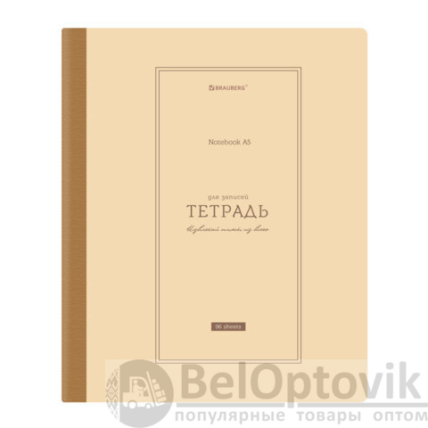 Тетрадь А5 96 л. BRAUBERG, на сшивке с корешком, клетка, обложка картон, "Classic", 405291