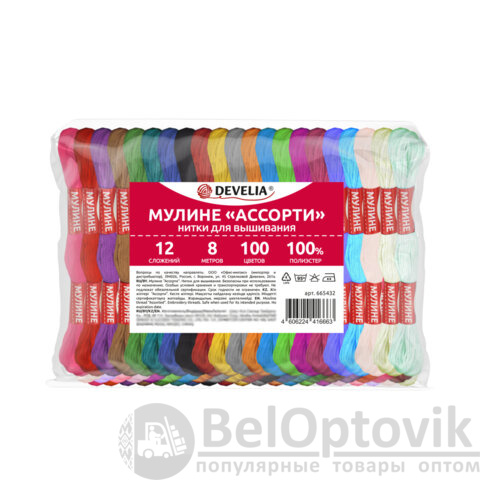 Набор ниток мулине DEVELIA состоит из 100 мотков ниток разных цветов в 12 сложений в намотке по 8 метров. Поставляются в пластиковом прозрачном боксе с удобной крышкой.