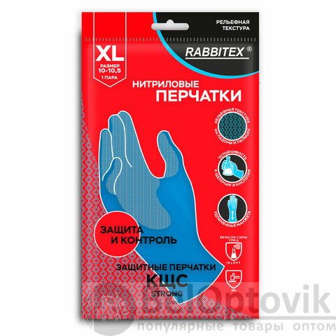 Перчатки нитриловые КЩС STRONG химически устойчивые, синие, размер 10-10,5, XL (очень большой), RABBITEX (РАББИТЕКС), 700909