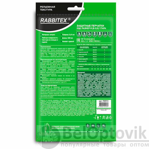 Нитриловые перчатки RABBITEX для защиты рук от загрязнений и химических факторов: кислот, щелочей, нефтепродуктов, растительных и животных масел и жиров, а также от воды и растворов нетоксичных веществ. Могут применяться в быту и на производстве.