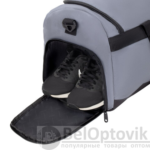Основное внутреннее отделение свободно вмещает всю необходимую спортивную форму или комплект одежды для небольшого путешествия, гигиенические принадлежности и дополнительные аксессуары. Наличие специального бокового отделения позволяет разместить сменную обувь отдельно, обеспечивая дополнительную чистоту остального содержимого.