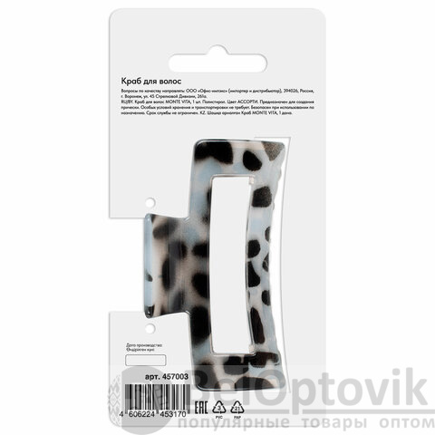 Краб для волос MONTE VITA – это незаменимый аксессуар для создания прически: от романтичной до строгой и деловой. Удобен и прост в обращении.