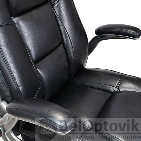 Обивка кресла выполнена из рециклированной кожи – современного материала, созданного из измельченных частиц натуральной кожи. По эластичности и прочности такая кожа максимально близка к натуральной, а также имеет запах выделанной кожи. Материал отлично пропускает воздух, что положительным образом сказывается на комфорте во время эксплуатации. Рециклированная кожа износоустойчива, кресло способно сохранять привлекательный внешний вид длительное время.