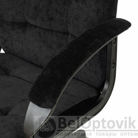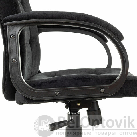 Подлокотники кресла выполнены из прочного пластика черного цвета с мягкими накладками.